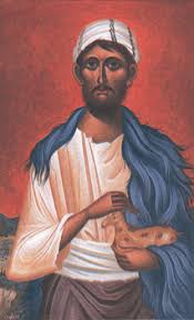 Ἔπιασε καὶ θαμπόφεγγε κατὰ τὸ μέρος τῆς ἀνατολῆς. Ὁ ἅγιος Βασίλης σηκώθηκε καὶ στάθηκε κατὰ τὴν ἀνατολὴ κ᾿ ἔκανε τὸ σταυρό του, ὕστερα ἔσκυψε καὶ πῆρε μία φυλλάδα ἀπὸ τὸ ταγάρι του, κ᾿ εἶπε: «Εὐλογητὸς ὁ Θεὸς ἡμῶν πάντοτε,νῦν καὶ ἀεὶ καὶ εἰς τοὺς αἰώνας τῶν αἰώνων». Κι ὁ Γιάννης ὁ Βλογημένος πῆγε καὶ στάθηκε ἀπὸ πίσω του, κ᾿ ἡ γυναίκα βύζαξε τὸ μωρὸ καὶ πῆγε καὶ κείνη καὶ στάθηκε κοντά του, μὲ σταυρωμένα χέρια. Κι ὁ ἅγιος Βασίλης εἶπε τὸ «Θεὸς Κύριος» καὶ τ᾿ ἀπολυτίκιο τῆς Περιτομῆς «Μορφὴν ἀναλλοιώτως ἀνθρωπίνην προσέλαβες», δίχως νὰ πεῖ καὶ τὸ δικό του τὸ ἀπολυτίκιο ποὺ λέγει «Εἰς πάσαν τὴν γῆν ἐξῆλθεν ὁ φθόγγος σου». Ἡ φωνή του εἴτανε γλυκειὰ καὶ ταπεινή, κι ὁ Γιάννης κ᾿ ἡ γυναίκα του νοιώθανε μεγάλη κατάνυξη, κι ἂς μὴν καταλαβαίνανε τὰ γράμματα. Κ᾿ εἶπε ὁ ἅγιος Βασίλης ὅλον τὸν Ὄρθρο καὶ τὸν Κανόνα τῆς Ἑορτῆς: «Δεῦτε λαοὶ ἄσωμεν ἄσμα Χριστῷ τῷ Θεῷ, χωρὶς νὰ πεῖ τὸ δικό του τὸν Κανόνα, ποὺ λέγει «Σοῦ τὴν φωνὴν ἔδει παρεῖναι, Βασίλειε». Κ᾿ ὕστερα εἶπε ὅλη τὴ λειτουργία κ᾿ ἔκανε ἀπόλυση καὶ τοὺς βλόγησε.